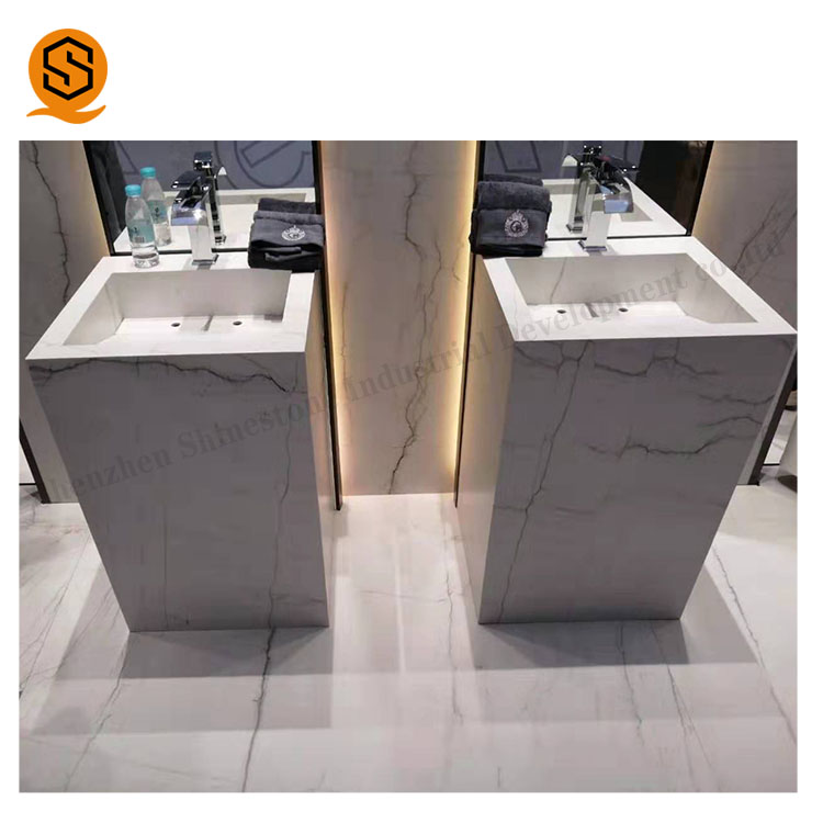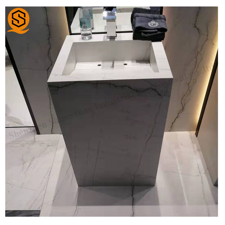 工厂人造石定制星级酒店洗手间欧式亚克力白色立柱盆